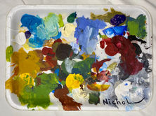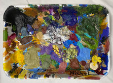 All painters have some form of a painter's pallet. How it is used and what form that pallet takes is as unique as each artist themselves. I have always used recycled polystyrene meat trays that our grocery meat purchases come in as my painting pallets. These pallets come from a place of scarcity and repurpose. Having been raised by parents who survived the Great Depression all to be forced into a better life through immigration as adults, we were taught to consider every scrap of trash as a potential toy, tool or resource with which to build. I think this scarcity mindset had a uniquely wonderful effect on my creative choices and pursuits. I also love the fact that collectors can own a piece of the actual creative process. Each pallet is signed upon completion of each work and is offered for sale.